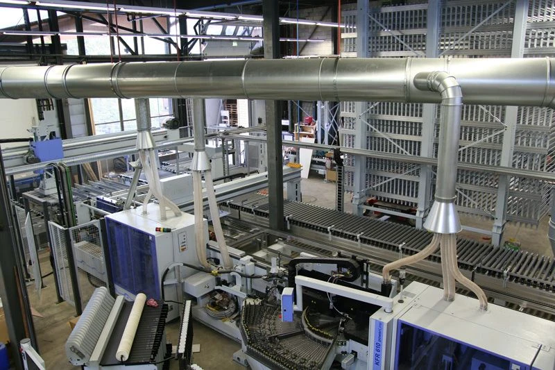 Im Juli wurde eine neue Zuschnittfräse mit einem Kran-Roboter und ein zusätzliches Plattenlager für 180 Platten innert 14 Tagen installiert.